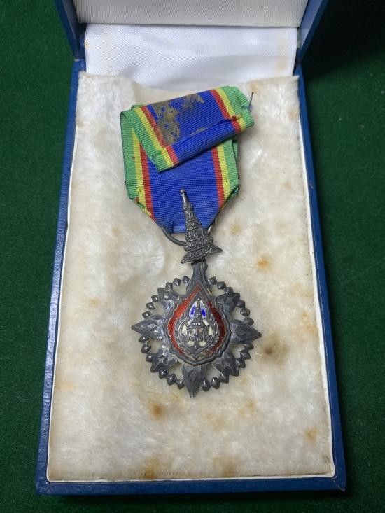 แพรแถบเครื่องราชเนื้อเงินลงยา หลังจปร. สวยเดิม มีกล่อง |