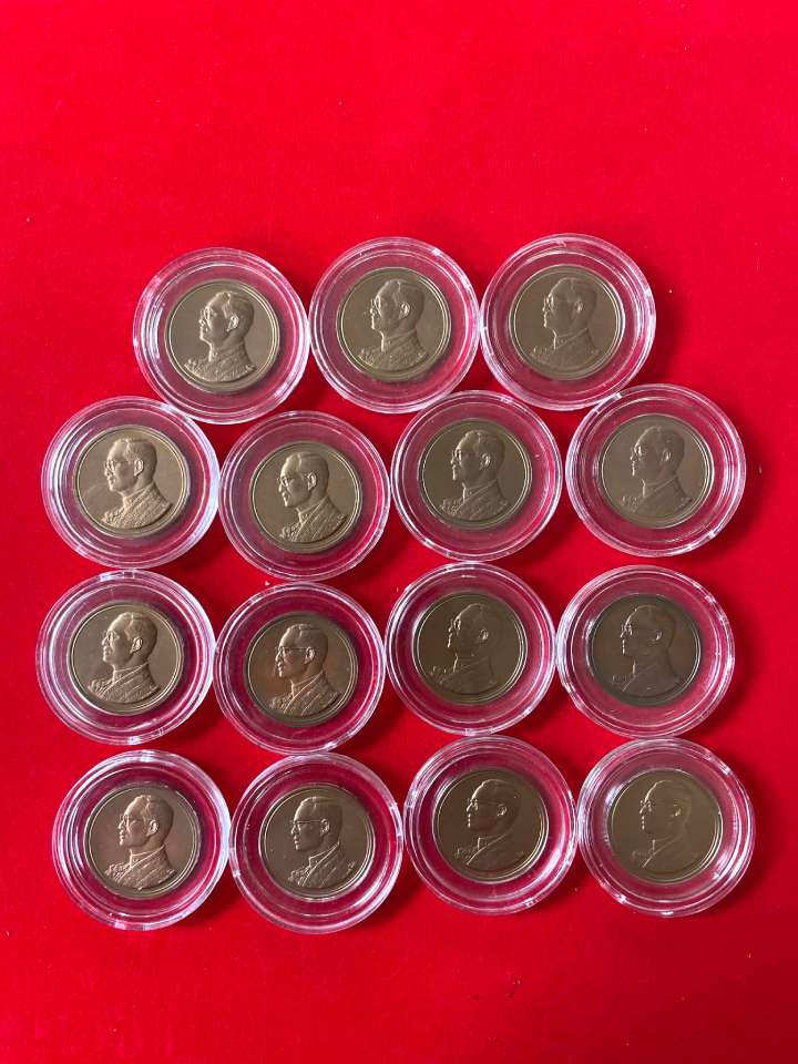 15 เหรียญ เหรียญในหลวงรัชกาลที่ 9 ฉลองสิริราชสมบัติครบ 60 ปี เนื้อทองแดงซาติน พร้อมตลับ |
