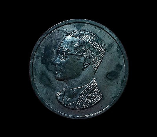 เหรียญในหลวง รัชกาลที่ 9 รุ่นคุ้มเกล้า สร้าง พศ 2522 เนื้อนวะโลหะ ในตลับพลาสติกกลมเดิมๆ |