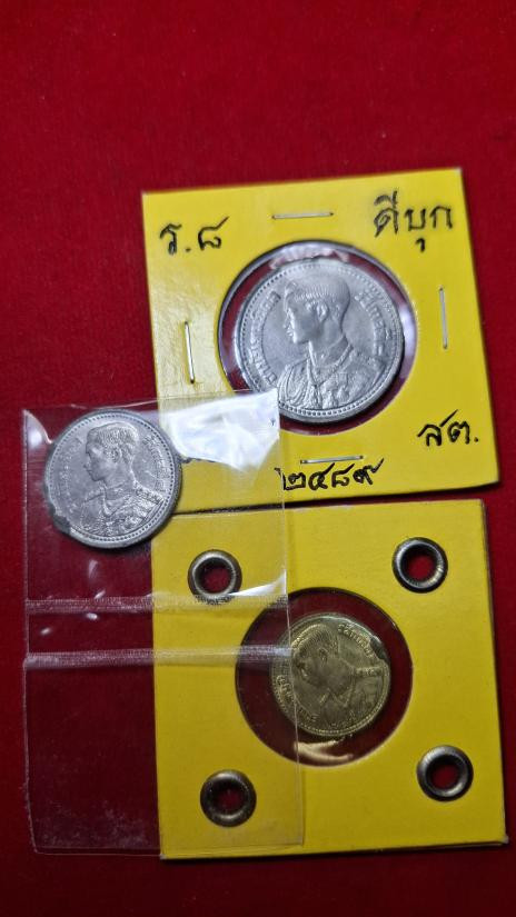 เหรียญกษาปณ์ดีบุก ชนิดราคา 50,25,10 สตางค์ พระบรมรูป รัชกาลที่ 8 รุ่นปี พ.ศ. 2489 สภาพสวยไม่ผ่านใช้ |