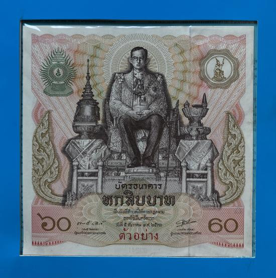 _ธนบัตรตัวอย่าง _บัตรธนาคาร 60 บาท ที่ระลึกพระบาทสมเด็จพระเจ้าอยู่หัว รัชกาลที่ 9 เฉลิมพระชนมพรรษาครบ 5 รอบ _พร้อมปก_ |