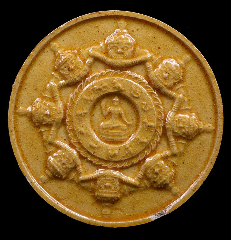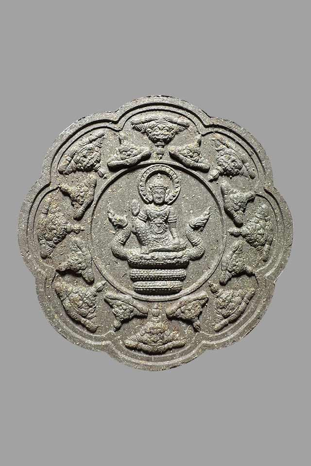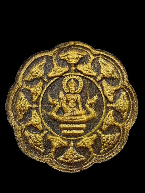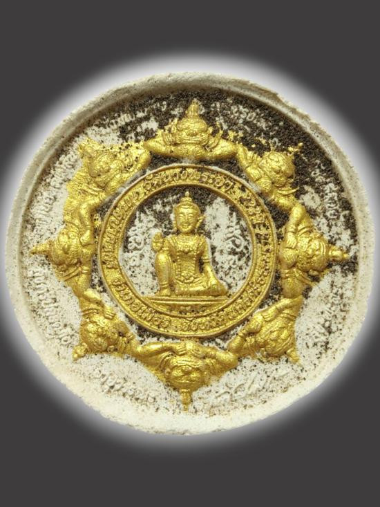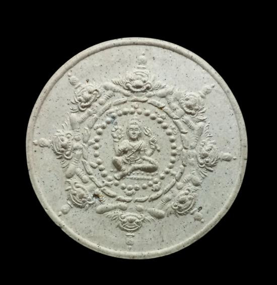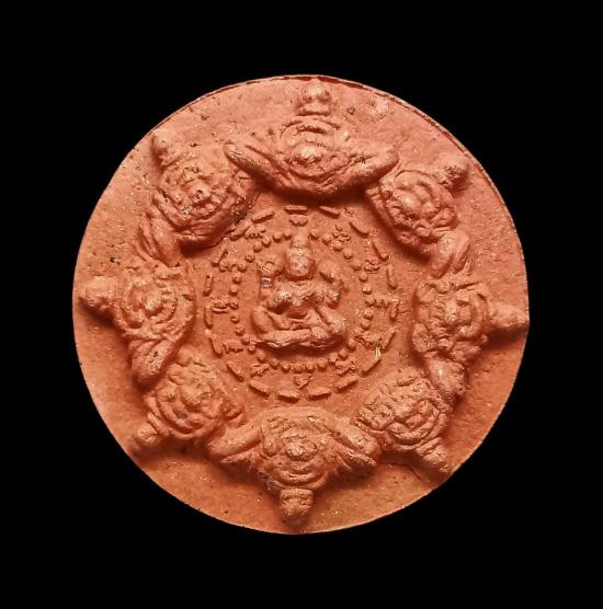 จตุคามรามเทพ ดวงตราพระเทวราชโพธิสัตว์ รุ่น มงคลบารมีศรีธรรมราช เนื้อผงว่านดินเผา ผสมผงเก่าซุ้มกอ(มึงมีกูไม่จน) สร้าง 5,000 องค์ ขนาด 5 ซม. วัดถลุงทอง ปี 2548