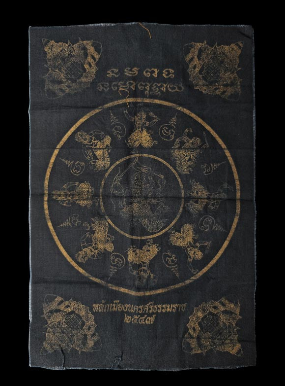 ผ้ายันต์เข้าพิธีเปิดศาลหลักเมืองนครศรีฯปี 2543 (เกาะเภตรา)และพิธีไหว้ครู |