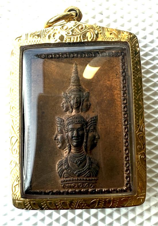 เหรียญแสตมป์ บล็อกเฮง 2530 เนื้อทองแดง เศียรหลักเมือง พร้อมเลี่ยมทอง 90 |