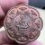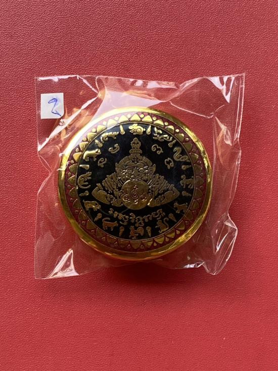 เคาะเดียวแดง สีผึ้งพระราหู รุ่น มงคลจักรวาล เนื้อ โลหะชุบทองลงยาสีดำขอบสีแดง ขนาด 5ซม |