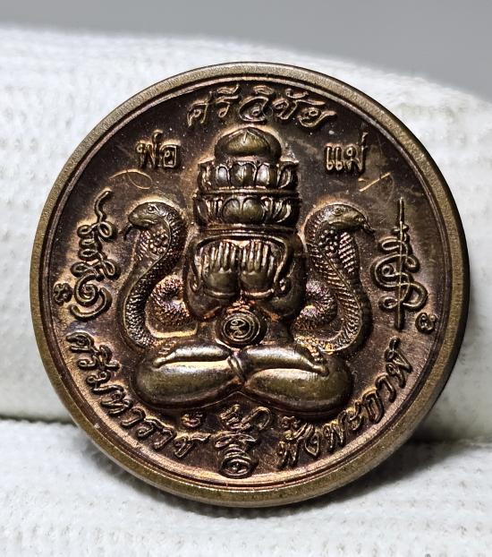 ปรกใบมะขาม องค์พ่อจตุคามรามเทพ วัดพระมหาธาตุฯ รุ่นชนะมาร เนื้อทองแดง ปี2547 ติดรางวัลที่2 |