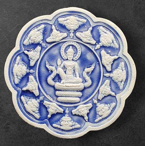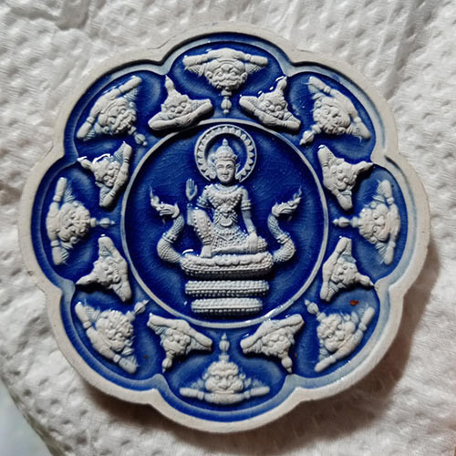 ปฐมอรหันต์สุวรรณภูมิเนื้อว่านไม้มงคล ธรรมจักร ขนาด 5 ซ.ม. สวยคมชัดทุกรายละเอียด จัดว่าเป็นเนื้อหายากครับ |