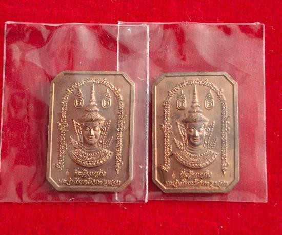 เหรียญท้าวจตุคามและท้าวรามเทพรุ่นพระเสื้อเมือง-พระทรงเมือง วัดหน้าพระบรมธาตุ จ.นครศรีธรรมราช ปี 2548 เนื้อทองแดง |