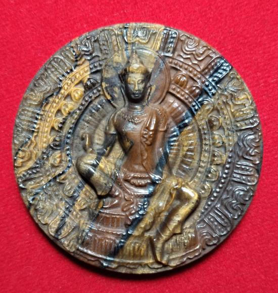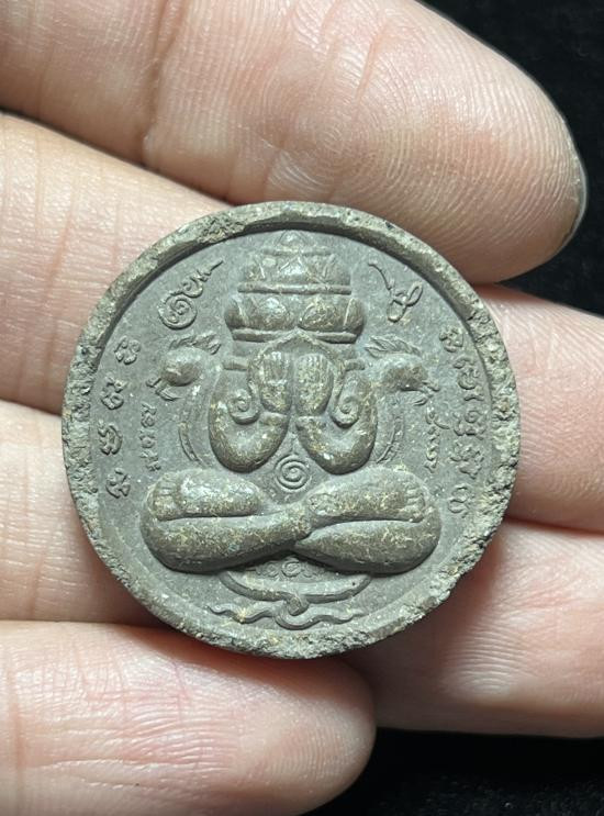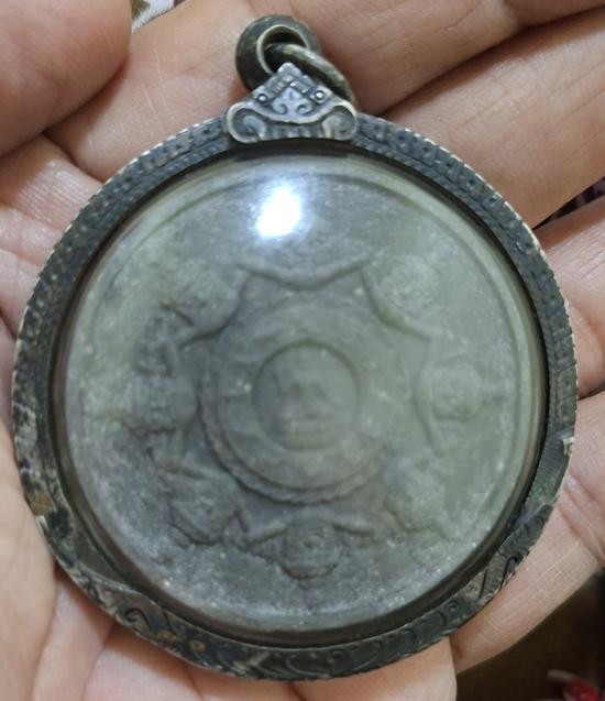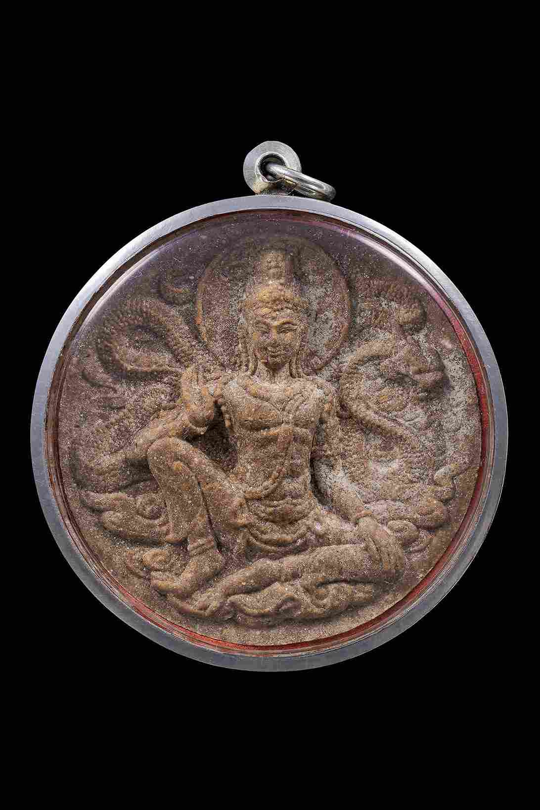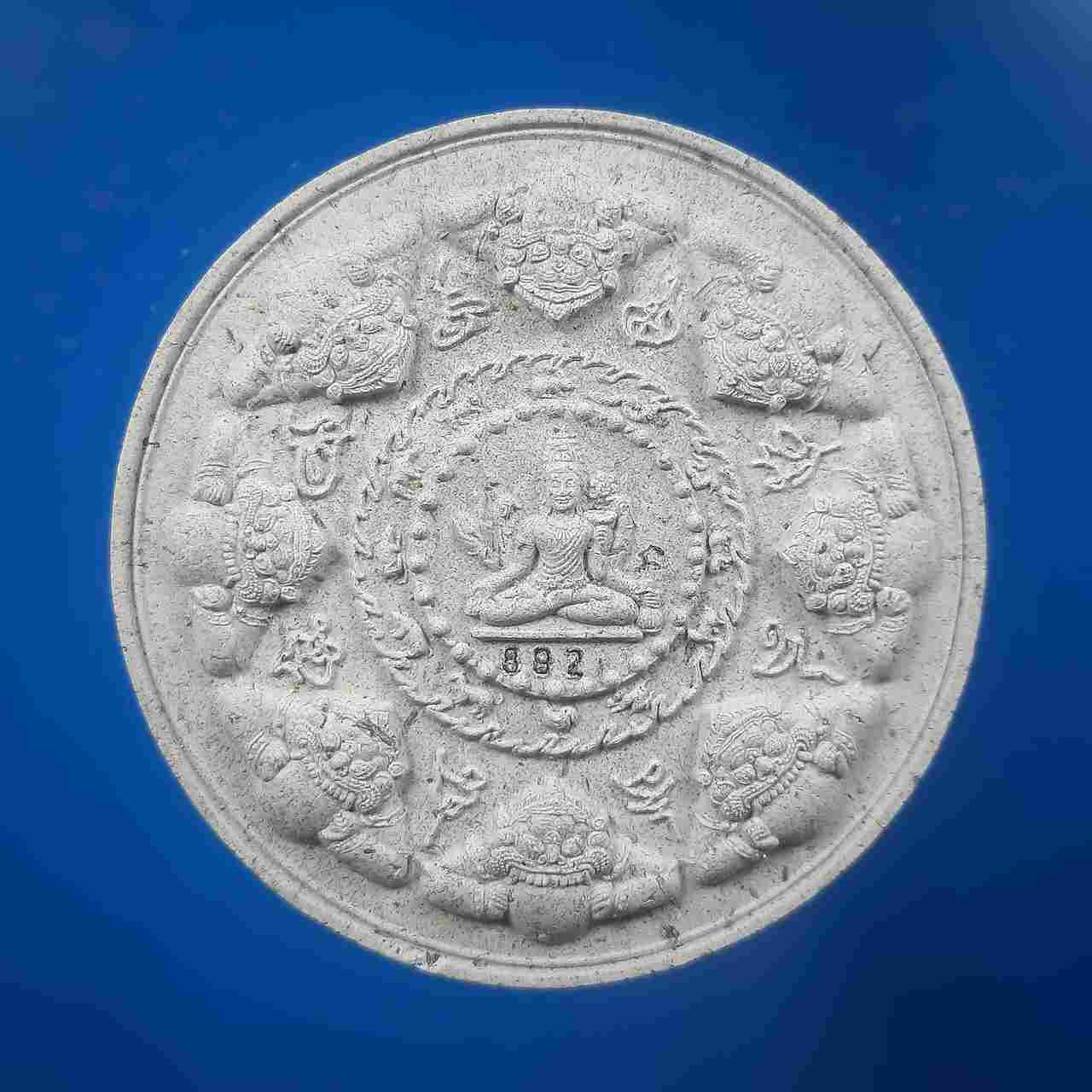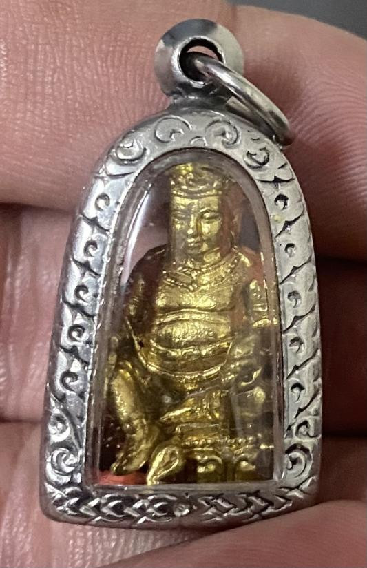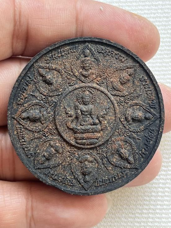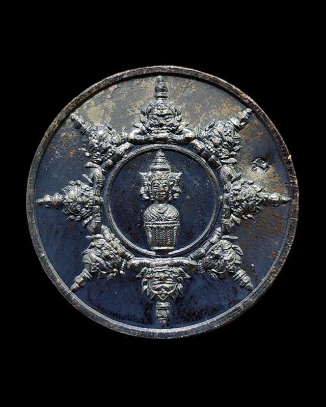 วัดใจไปเหรียญพระธนบดีศรีธรรมราชา จักรพรรดิพุทธาภิเษก นครศรีธรรมราช วัดชะเมา พ.ศ.2548 เนื้อเงินลงถม |