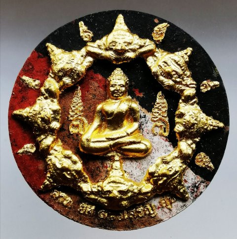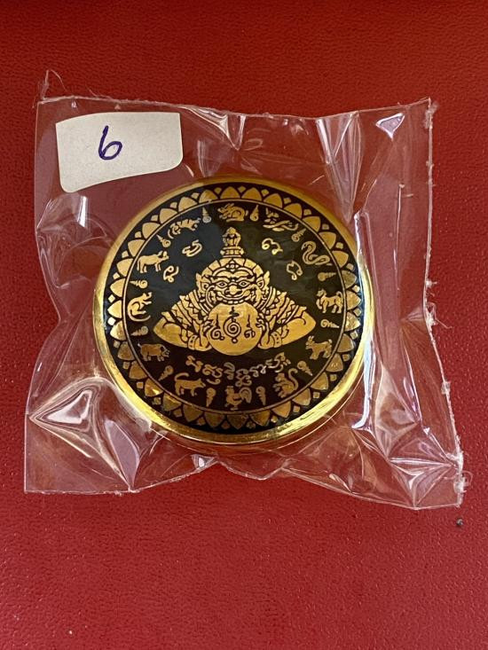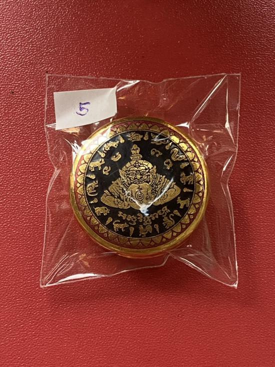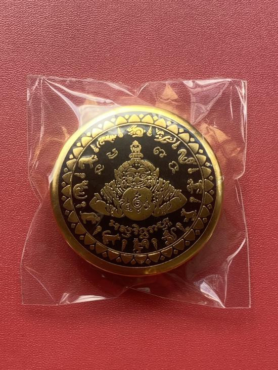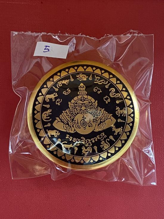 เคาะเดียวแดง สีผึ้งพระราหู รุ่น มงคลจักรวาล เนื้อ โลหะชุบทองลงยาสีดำขอบสีดำ ขนาด5ซม |