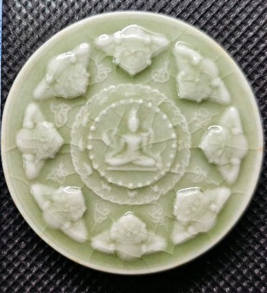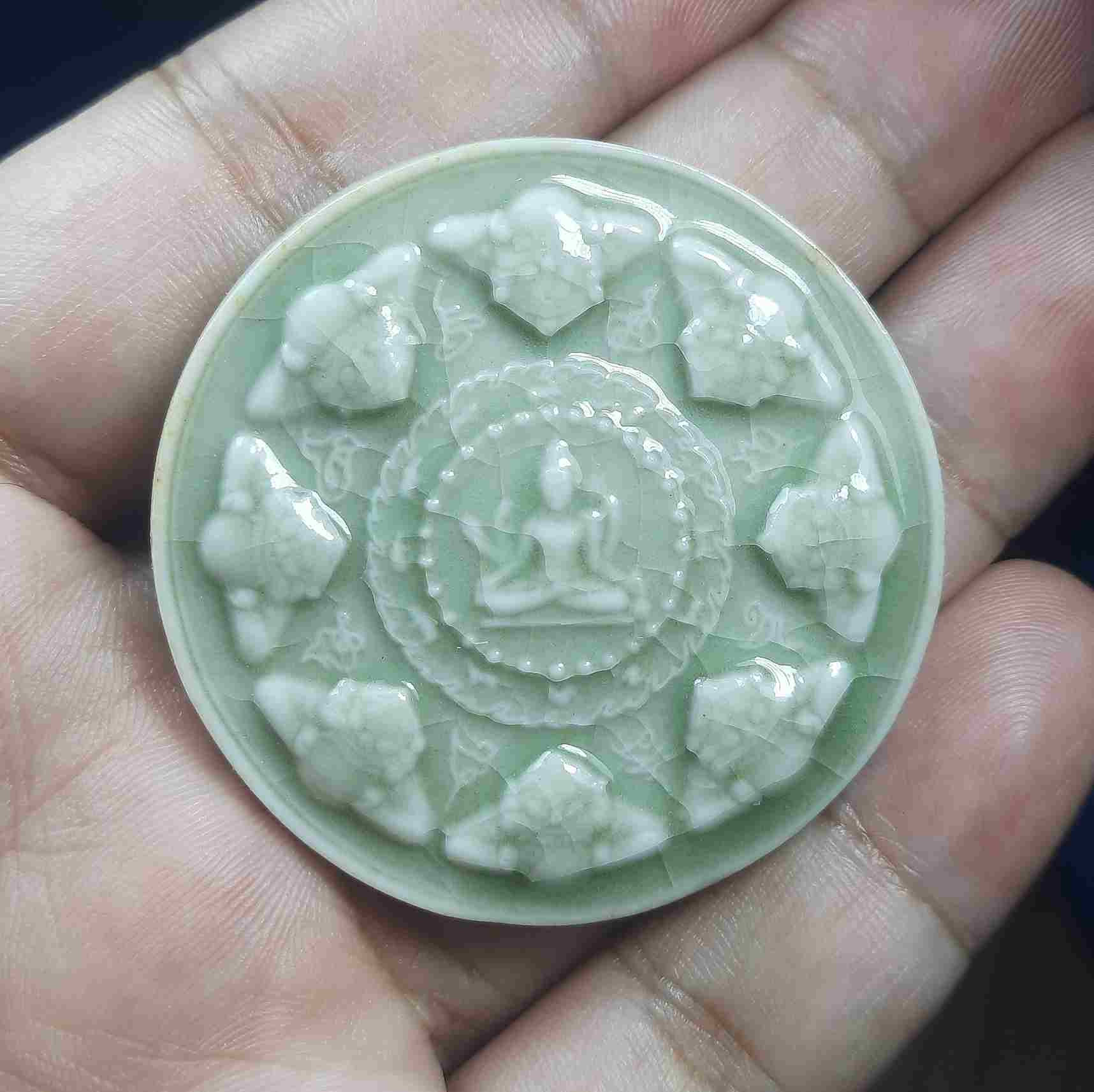 ปฐมอรหันต์ สุวรรณภูมิ 2547 เนื้อกระเบื้องเคลือบสีแดงพิมพ์ธรรมจักร ขนาด 5 ซ.ม. สวยๆพร้อมกล่องเดิมๆ |