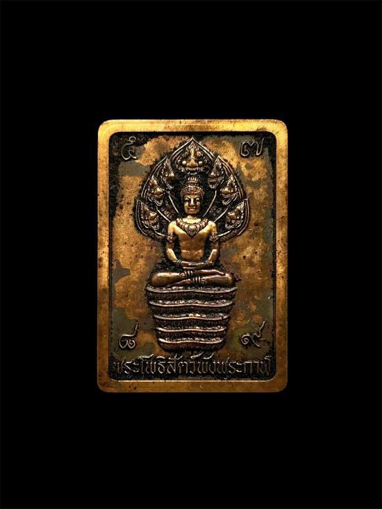 เหรียญพระโพธิสัตว์พังพระกาฬ รุ่น ฝ่าดวง "เนื้อกะหลั่ยทอง" (เหรียญลุ้นพิเศษ) เลขมงคล พิธีเทวาภิเษก ณ หลักเมืองนครฯ