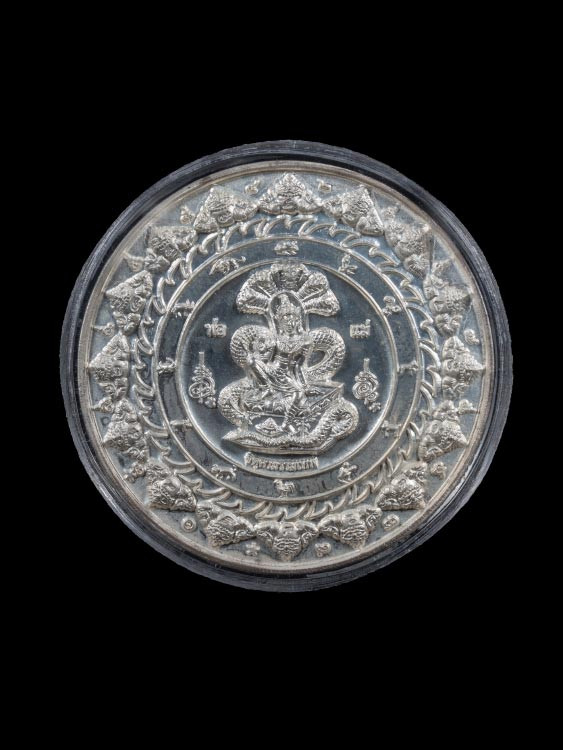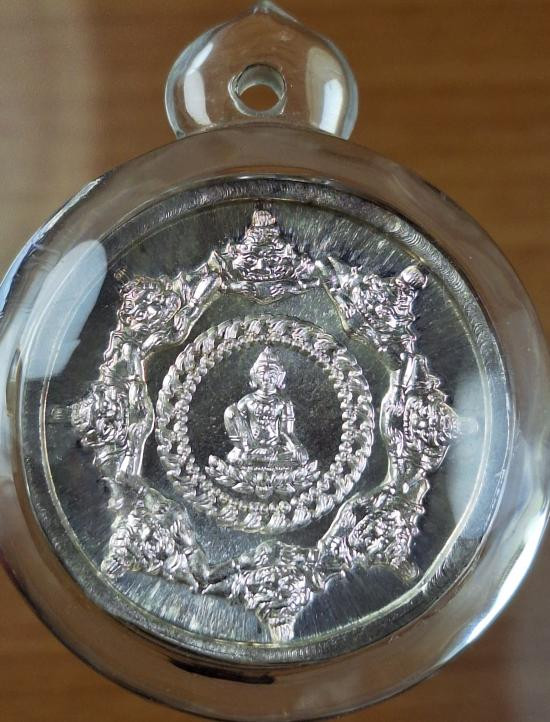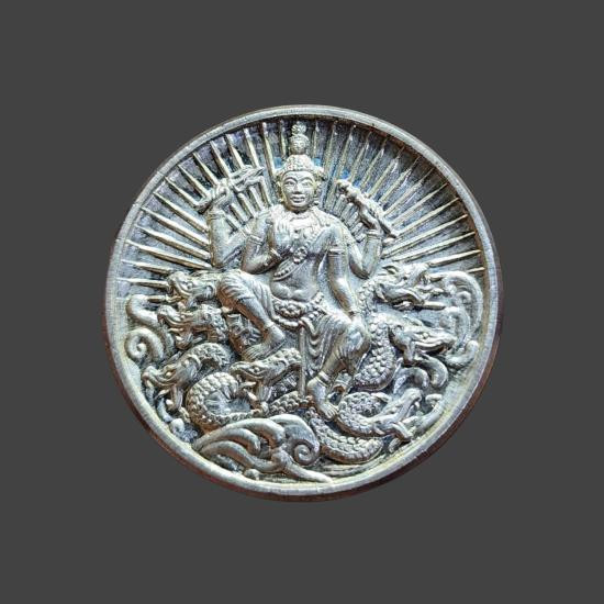 จตุคามรามเทพ รุ่น อริยทรัพย์ อาจารย์ ประสูติ วัดในเตา เหรียญเงิน ขนาด 3.2 ซ.ม นน 18.1 กรัม |