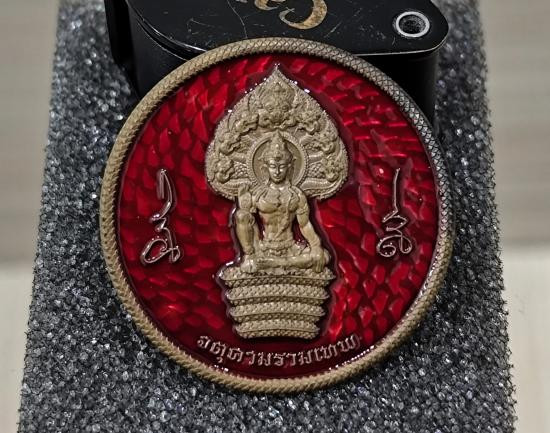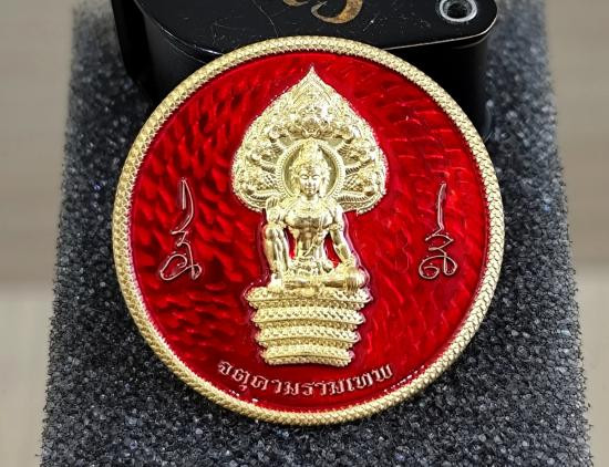 เหรียญปาฎิหารย์เหนือดวง วัดพุทไธศวรรย์ เนื้อทองทิพย์ลงยาน้ำเงิน |