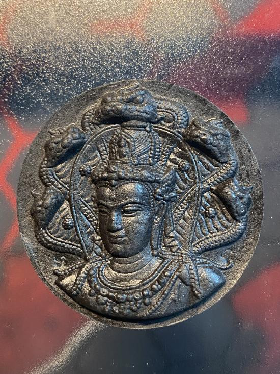 เหรียญพระโพธิสัตว์พังพระกาฬ รุ่น ฝ่าดวง "เนื้อนวโลหะ" เลขมงคล "181" ผิวดำคมเข้มสวยๆ |