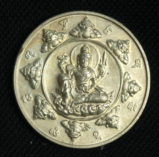 เหรียญปาฎิหารย์เหนือดวง วัดพุทไธศวรรย์ นวะลายเสือ เจ้าทรัพย์ ฝังพลอยแดง เลขโค้ด ๒๑๙ |