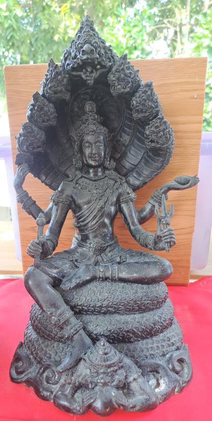 เคาะเดียว จตุคามราเทพขนาดบูชา หน้าตะก5.5นิ้วสูง13นิ้วฐานกว้าง7นิ้ว หลังตรา ยุทธหัตถี ไม่ทราบที่ |
