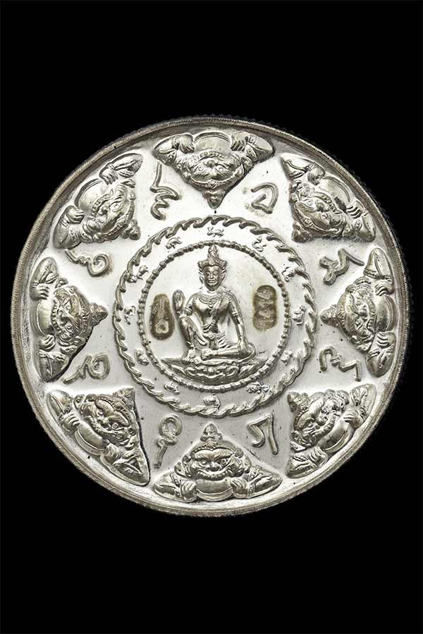 เหรียญเงินลงยาเศียรหลักเมืองประจำวันเกิด รุ่น จ้าวขุมทรัพย์ วัดพระมหาธาตุวรวิหาร นครศรีธรรมราช 2540 |
