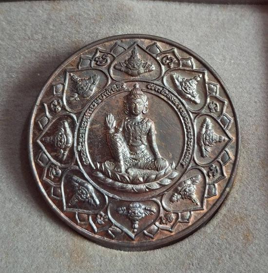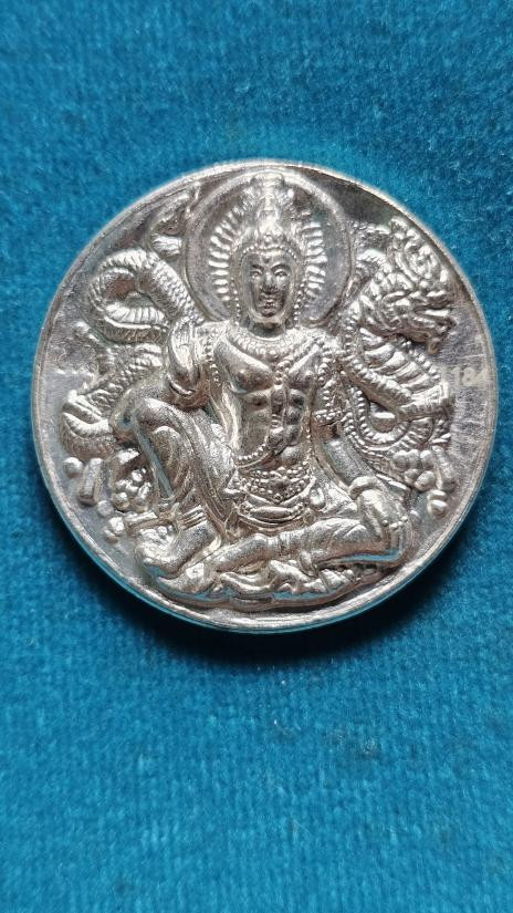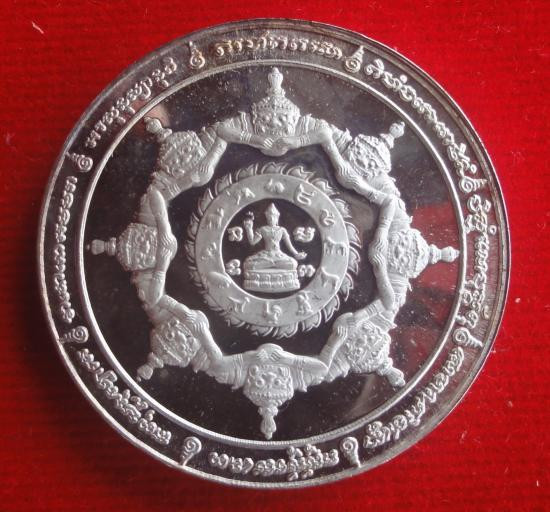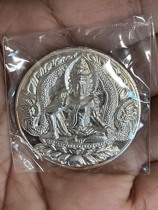 เหรียญขนาด 3.2 ซม. เนื้อเงิน (หนักประมาณ 23 กรัม) ไม่มีกล่องครับ |