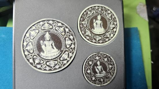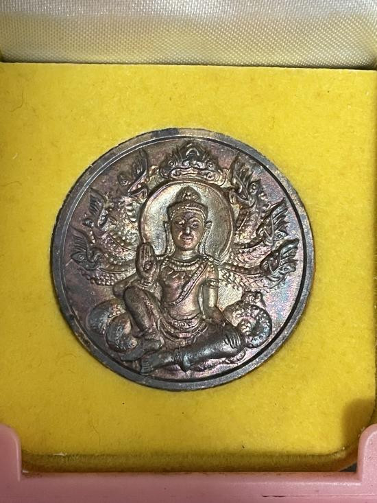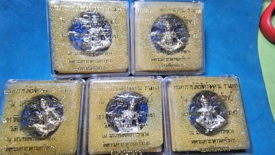 เหรียญรุ่นเศรษฐีทวีทรัพย์ ขนาด 3.5 เนื้อนวหน้ากากเงิน จำนวน 5 เหรียญ พร้อมกล่องเดิมครับ |