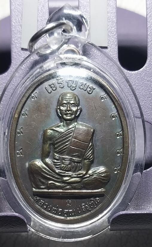 วัดใจ เหรียญเจริญพรบน หลวงพ่อเหิน ปุญญักเขตโต สำนักสงฒ์เพชรพญาธาร เพชรบูรณ์ เนื้อทองทิพย์ผิวรุ้ง