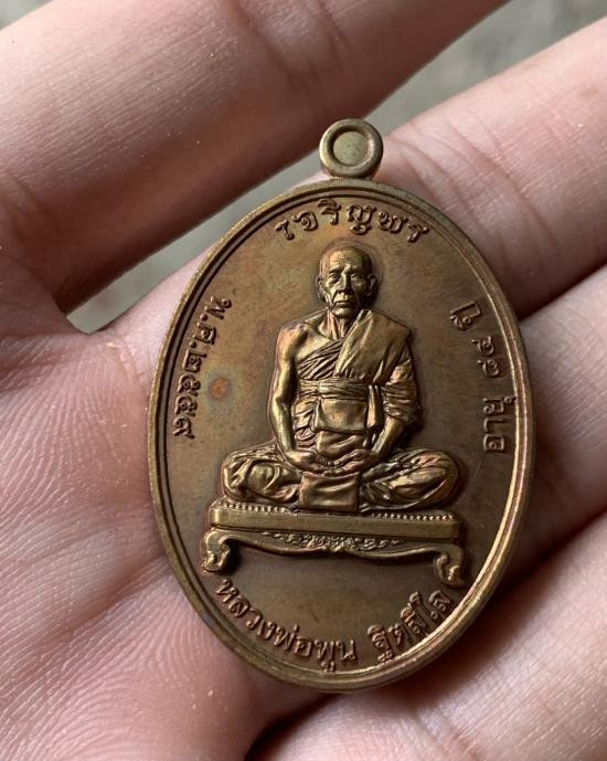 เหรียญหันข้าง รุ่นที่ระลึกสร้างอุโบสถ หลวงพ่อทอง สุทธสีโล วัดพระพุทธบาทเขายายหอม จ.ชัยภูมิ ปี2556 เนื้อสัตตะหลังแบบ แยกจากชุดกรรมการ หมายเลข 579 พร้อมกล่องครับ