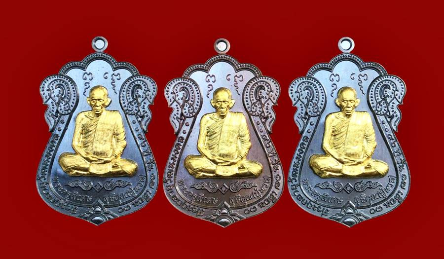 เหรียญพระพรหมสี่หน้า เสาร์ห้า หลวงพ่อชำนาญ รุ่นแรก เนื้อทองแดงลงยา 3 เหรียญ 3 สีปี2560 ตอกโคัดและหมายเลช197+บัตรจี