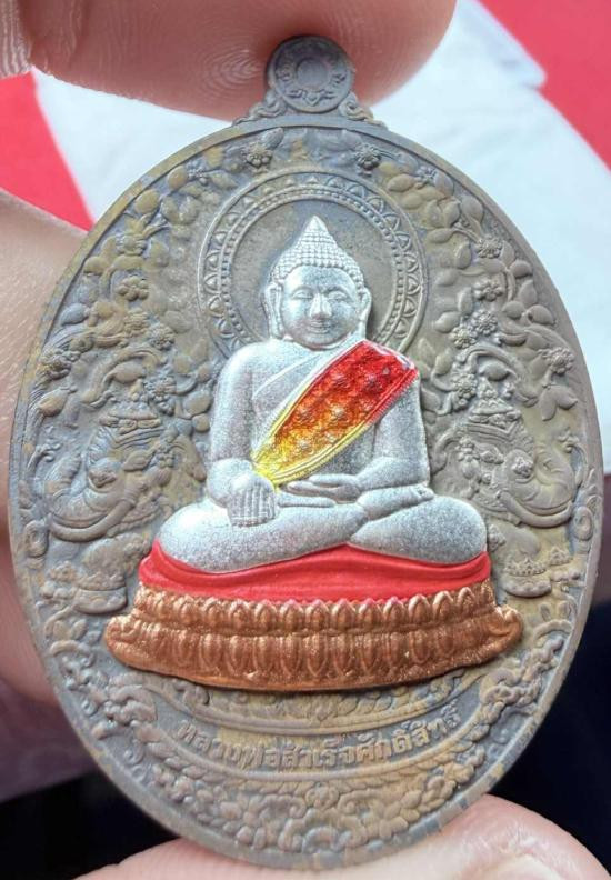 เหรียญหลวงพ่อสำเร็จศักดิ์สิทธิ์ ( เนื้อเงินลงยา 3 สี ) ตอก 2 โค๊ต ตอกหมายเลข ปี 2555 สภาพสวยครับ