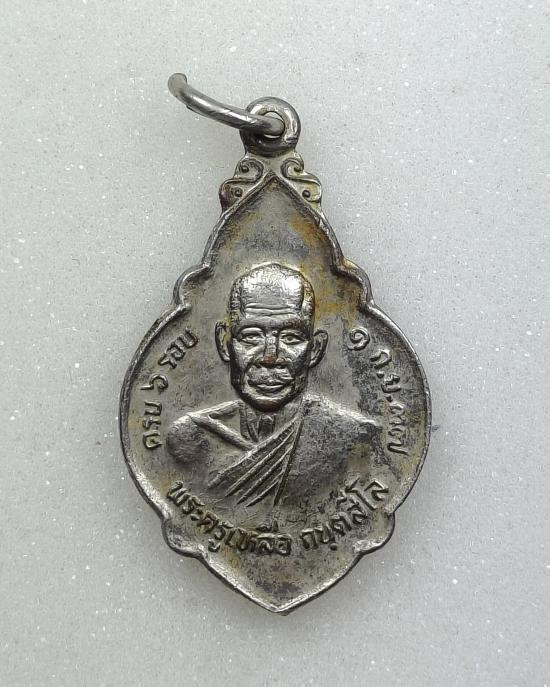 เคาะเดียว60.เหรียญพระครูเหลือ วัดช้าง จ.นครนายก เนื้อทองแดงกะไหล่เงิน ปี 2537 |