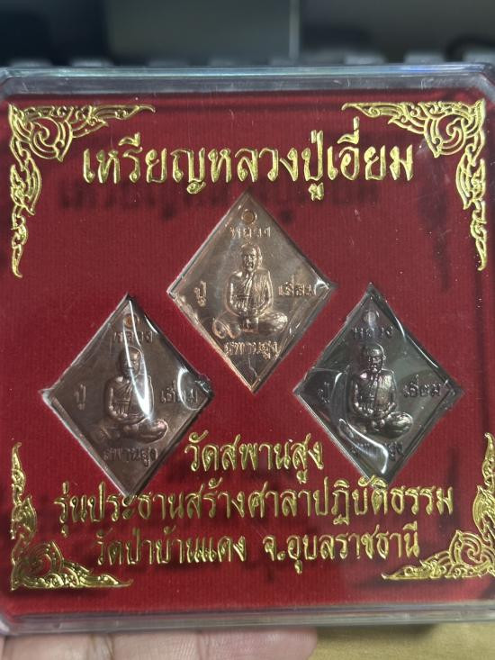 หลวงปู่เอี่ยม วัดสะพานสูง นนทบุรี รุ่นบูรณะอำเภอปากเกร็ด เนื้อฝาบาตร 2 องค์ สวยกล่องเดิม ยังไม่แกะซีล |