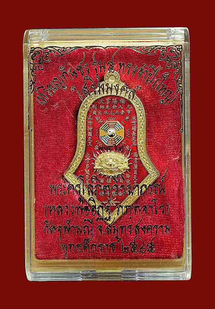 เคาะเดียวแดง หลวงปู่บุดดา รุ่น สำเภาร่ำรวยแสนล้าน รายการที่3.2 เนื้อ นวะหน้ากากชุบทอง ขอบชุบทองลงยา |