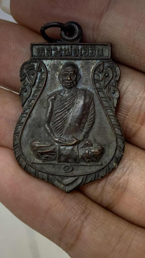 เหรียญเสมา หลวงพ่อเอื้อน วัดวังแดงใต้ รุ่นแรก พิมพ์ใหญ่ บล็อกแรก1ชิดบน เนื้อทองแดง(1) |