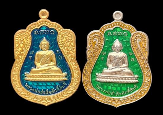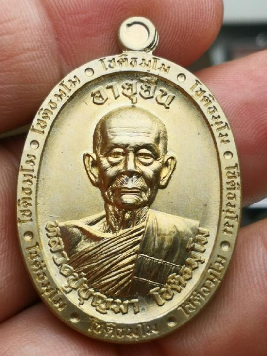 เหรียญหลวงปู่บุญมา โชติธัมโม รุ่นกันภัย เนื้อทองฝาบาตลงยา สวยมาก ปี 2564 |