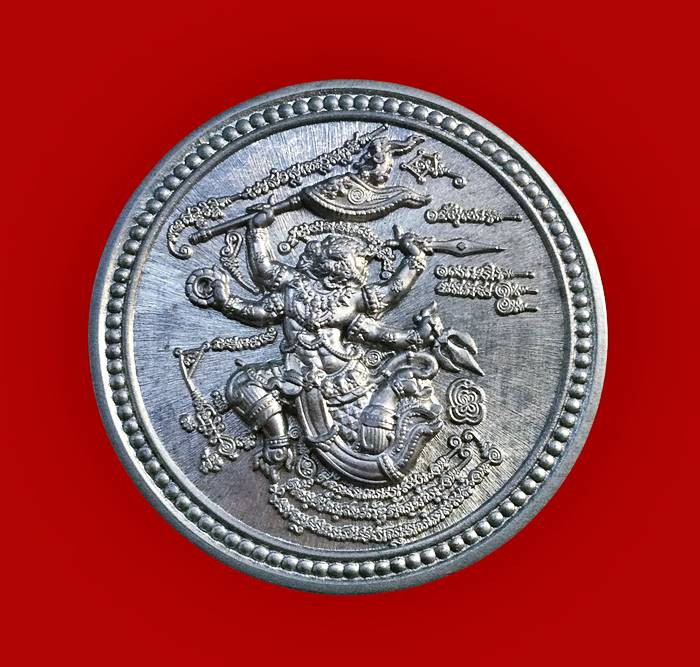 เหรียญท้าวมหาพรหม เจ้าสัวพันล้าน (จัดสร้างโดยบอย ท่าพระจันทร์) เนื้อนวะหน้ากากเงินหลังยันต์เงิน ต๊อกโค้ตเลข 1618 |