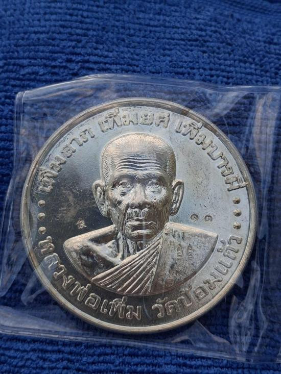เหรียญบาตรน้ำมนต์ใหญ่ เนื้อเงิน หลวงพ่อเพิ่ม วัดป้อมแก้ว จ.พระนครศรีอยุธยา เหรียญหนาๆหนักๆ |