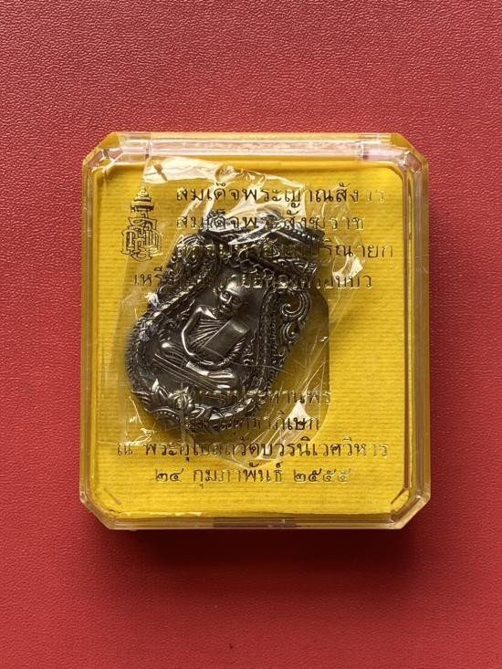 เหรียญรุ่น เสมา7รอบ หลวงปู่ฝั้น ปสาโท วัดหน้าผา จ.เพชรบูรณ์ เนื้อตะปูสังฆวานร ฝังเพชร กล่องเดิม |