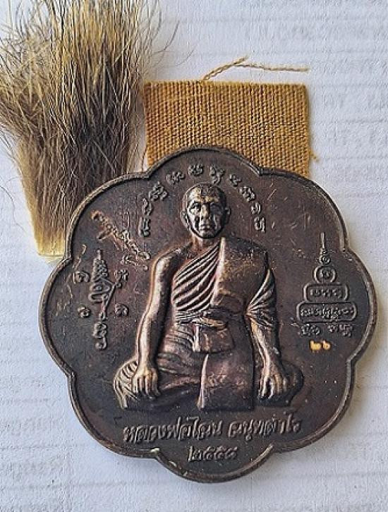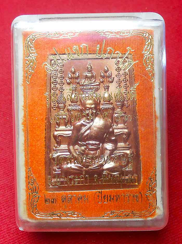 ปรกใบมะขาม หลวงปู่ผาด วัดบ้านกรวด สุรินทร์ ปี2550 เนื้อทองแดง |