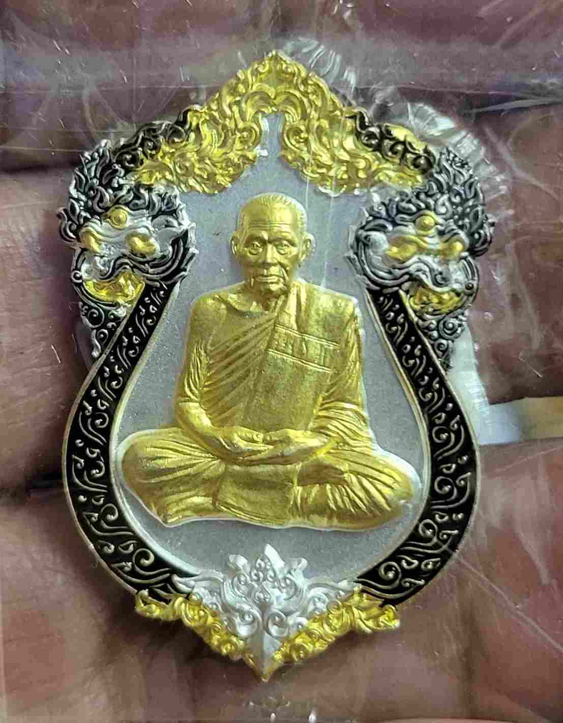 เหรียญหลวงพ่อบ้านแหลม วัดเพชรสมุทร เนื้อเงินหน้ากากทองคำแท้ สวยเข้มขลังนิยมครับ