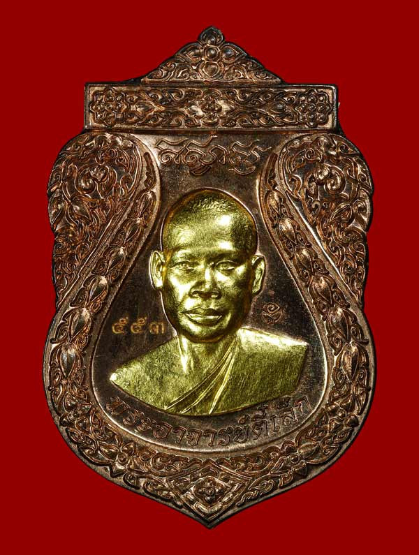 เหรียญ รุ่น เหรียญพุทธศิลป์ ๙ รอบ ธีรปัญโญ หลวงปู่คีบ วัดป่าสุทธาวาส เนื้อทองแดงลงยาหน้าทอง จังหวัดนครพนม พร้อมกล่อง |