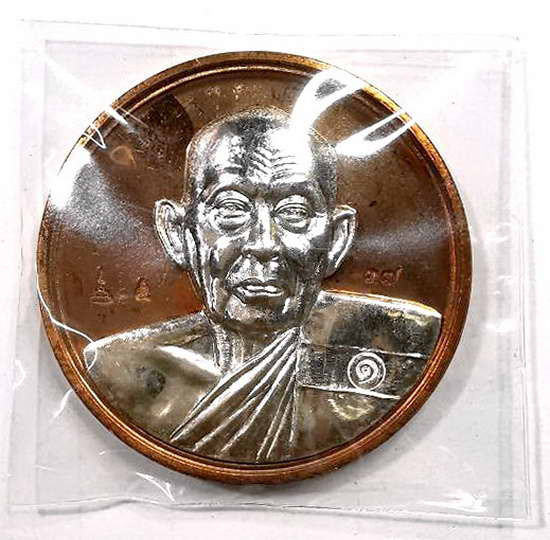 เหรียญรุ่นบูรพาจารย์ เนื้อเงินแท้ ไม่ตัดปีก หลวงพ่อเอิบ วัดซุ้มกระต่าย ปี 54 |