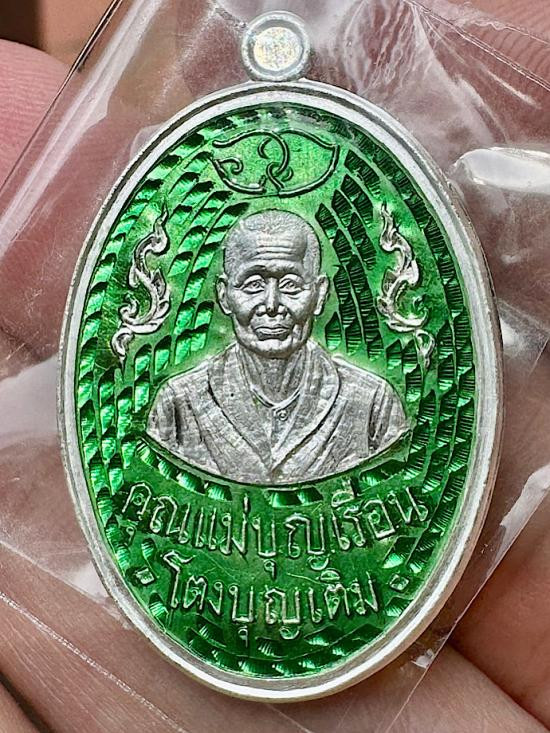 เหรียญย้อนยุคคุณแม่บุญเรือน ปี67 วัดอาวุธฯ รุ่น5 รอบ60ปี เนื้อเงินลงยาเขียว สวยสวย |