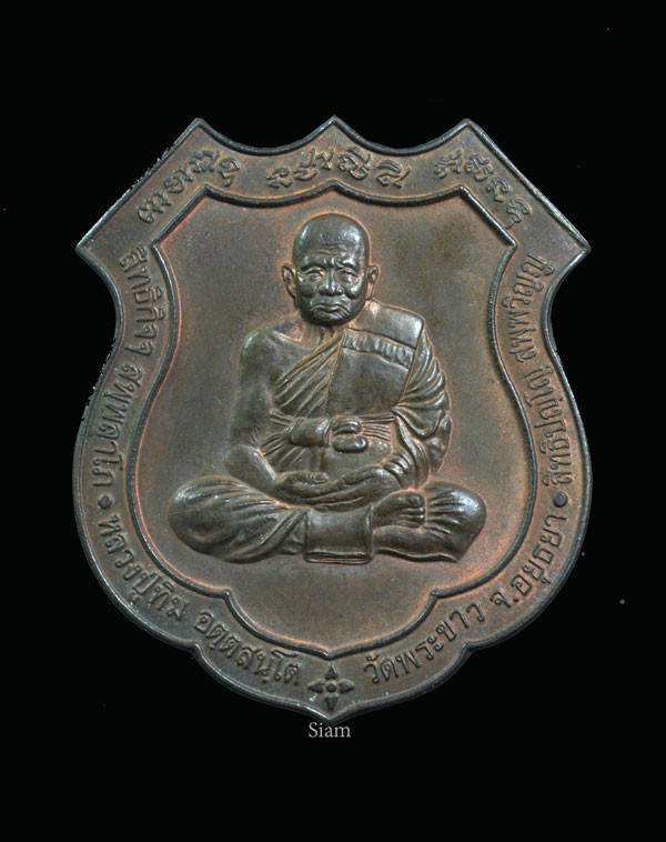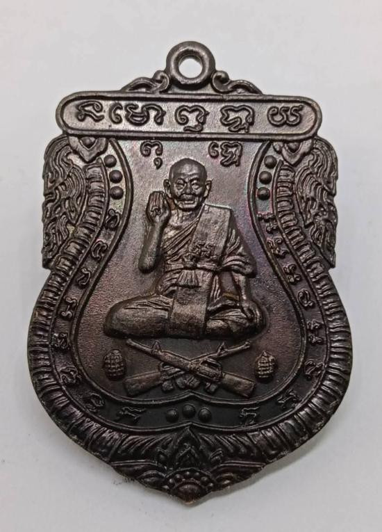 เคาะเดียวแดง...เหรียญโล่ห์รูปเหมือน เนื้อทองแดงผิวไฟ หลวงพ่อชำนาญ วัดบางกุฏีทอง ปี 2556 |
