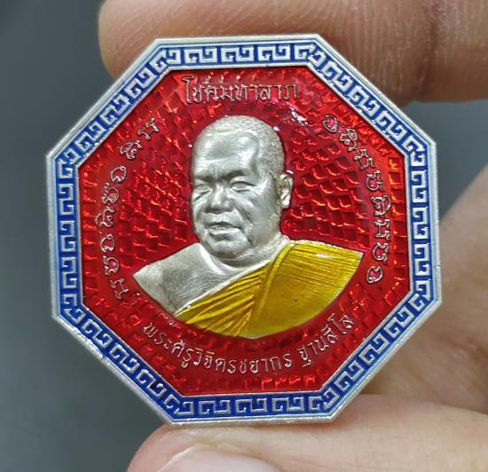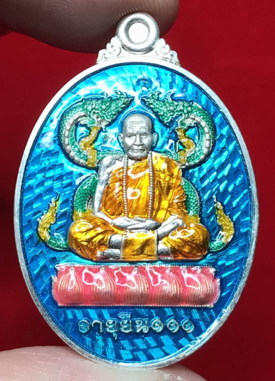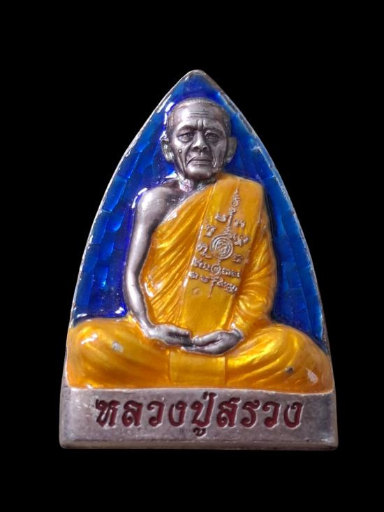 ((วัดใจ))รูปเหมือนปั๊ม (รุ่นแรก) หลวงปู่สรวง วัดถ้ำพรหมสวัสดิ์ จ.ลพบุรี รุ่นไตรมาส ปี พ.ศ.2554 เนื้อเงินลงยาสีน้ำเงิน หนัก20กรัม |