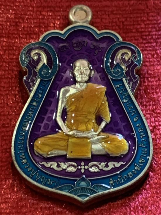 เหรียญพิมพ์นั่งพาน รุ่น 1 หลวงพ่อสวัสดิ์ ปุณณสีโล เนื้อเงินลงยาสีม่วง หมายเลข 14 วัดใจเคาะแรก!!! |