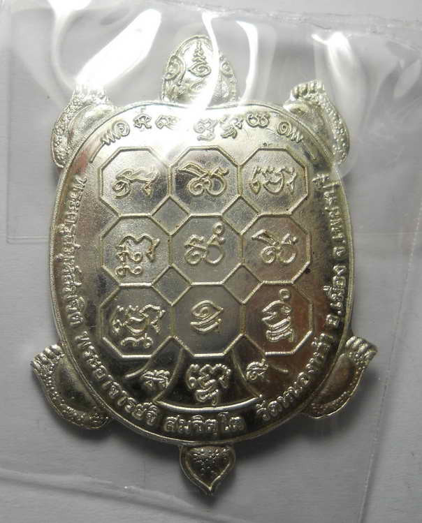 "วัดใจ" เหรียญพญาเต่าเรือน เลื่อนยศ รุ่นแรก พระอาจารย์จิ วัดหนองหว้า พ.ศ.2552 จ.เพชรบุรี เนื้อเงินสภาพสวยเดิมพร้อมกล่องเดิม "หมายเลขมงคล 168" |