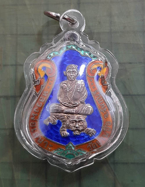 เหรียญนั่งเสือรุ่นแรก เนื้อเงินลงยา หลวงพ่อเสนาะ วัดย่านซื่อ จ.จันทบุรี |