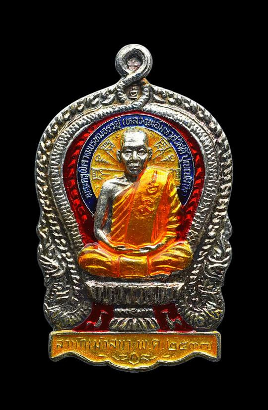 เหรียญเสมา ๘ รอบ หลวงปู่สมบุญ ปิยะธมฺโม เนื้อเงินคุ้ยพื้นลงยาจีวรขอบดำ ซุ้มน้ำเงินพื้นแดง หลังพื้นน้ำเงินยันต์ดำ เซอร์ไพรส์ตอกพิเศษ เลข ๕๙ วัดลำพันบอง จ.สุพรรณบุรี |