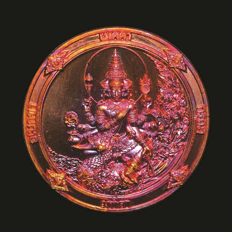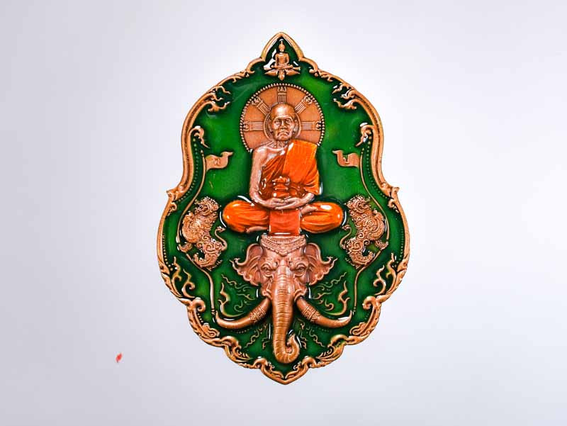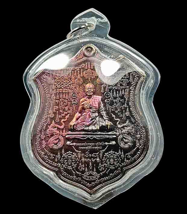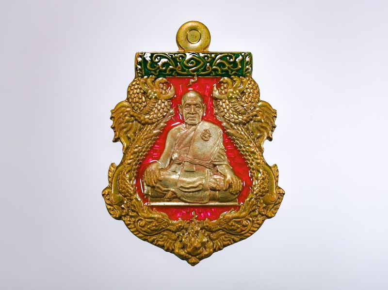 เหรียญเจริญพร หลวงพ่อยูร สคารโว วัดพนมเศษเหนือ จ.นครสวรรค์ เนื้อนวะ ลงยาแดง ลงยาจีวร หมายเลข 44 |