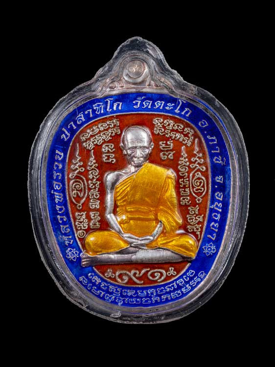 เหรียญปลอดภัย เนื้อเงินลงยา หลวงพ่อจ้อย |
