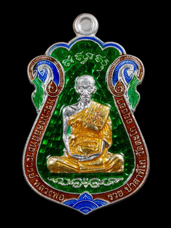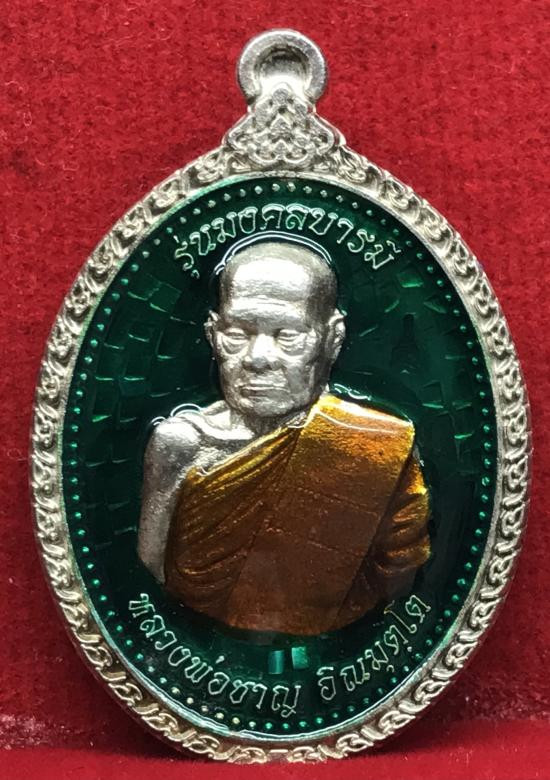 วัดใจ 200 เหรียญหลวงพ่อรวย รุ่นไตรมาส 59 เนื้อเงินลงยาเขียว วัดตะโก กล่องเดิมจากวัด เลี่ยมกันน้ำ |